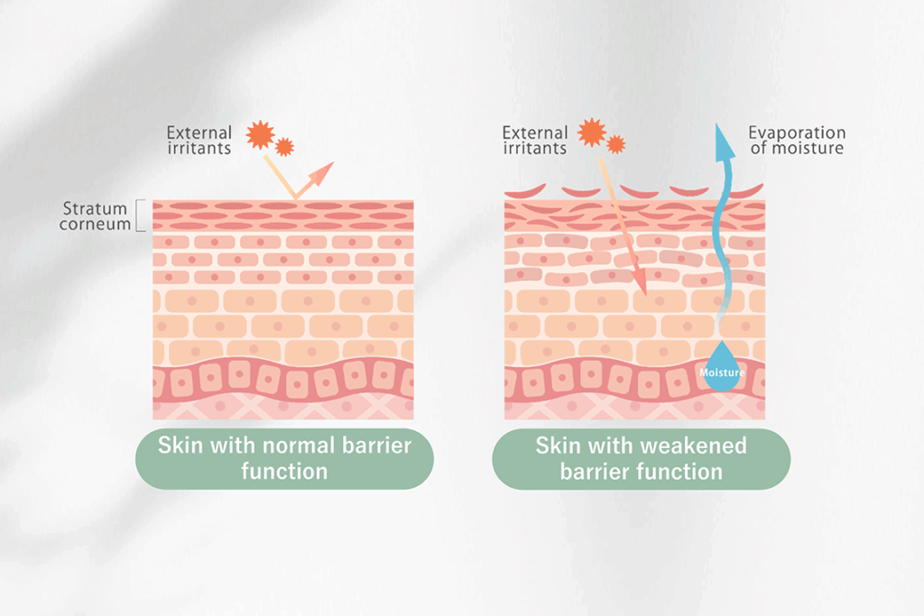 The skin’s barrier function protects against external irritants and retains moisture. When this function weakens, skin becomes more sensitive to external irritants, potentially resulting in dryness, itching, or redness, and may lead to skin irritation and inflammation.